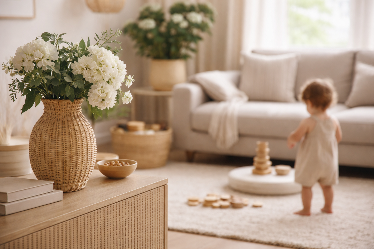 Rattan vase with faux stems